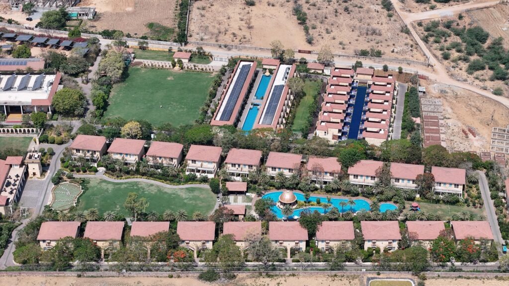 - Spa, restaurant, and wellness zones amid landscaped greens